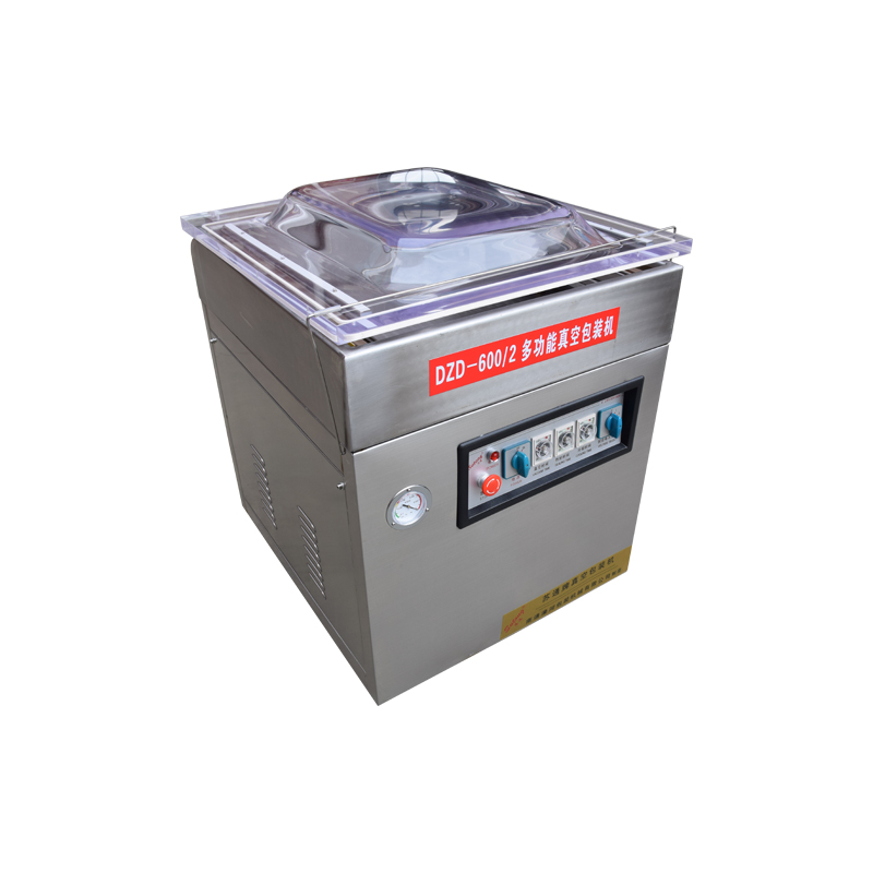 3、壓下機蓋,麵板上抽氣(真(zhēn)空)指示燈亮.真空泵開始抽(chōu)氣,機蓋即被自動吸住,抽真空旋鈕可根據包裝要求調節真空度高低(dī),調節時,視刻度由(yóu)低至高,幅度要小。