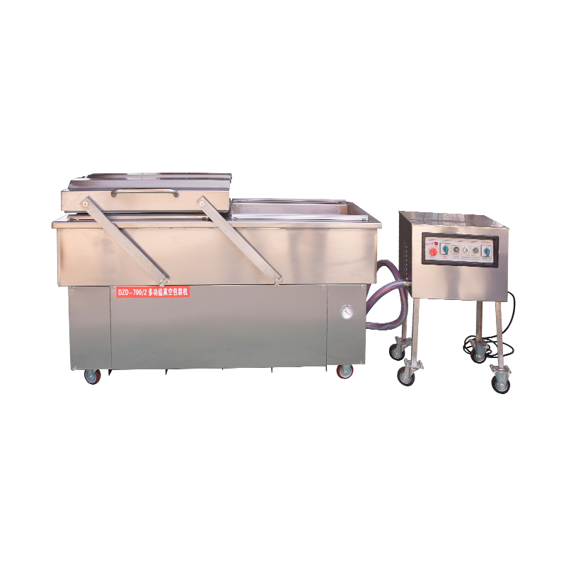 3、壓下(xià)機蓋,麵板上抽氣(真空)指示燈亮。真空泵開始抽(chōu)氣,機蓋(gài)即被自動吸住,抽真空旋鈕可根(gēn)據包裝要求調節真空度(dù)高低,調節時,視(shì)刻度由低至(zhì)高,幅度要小。
